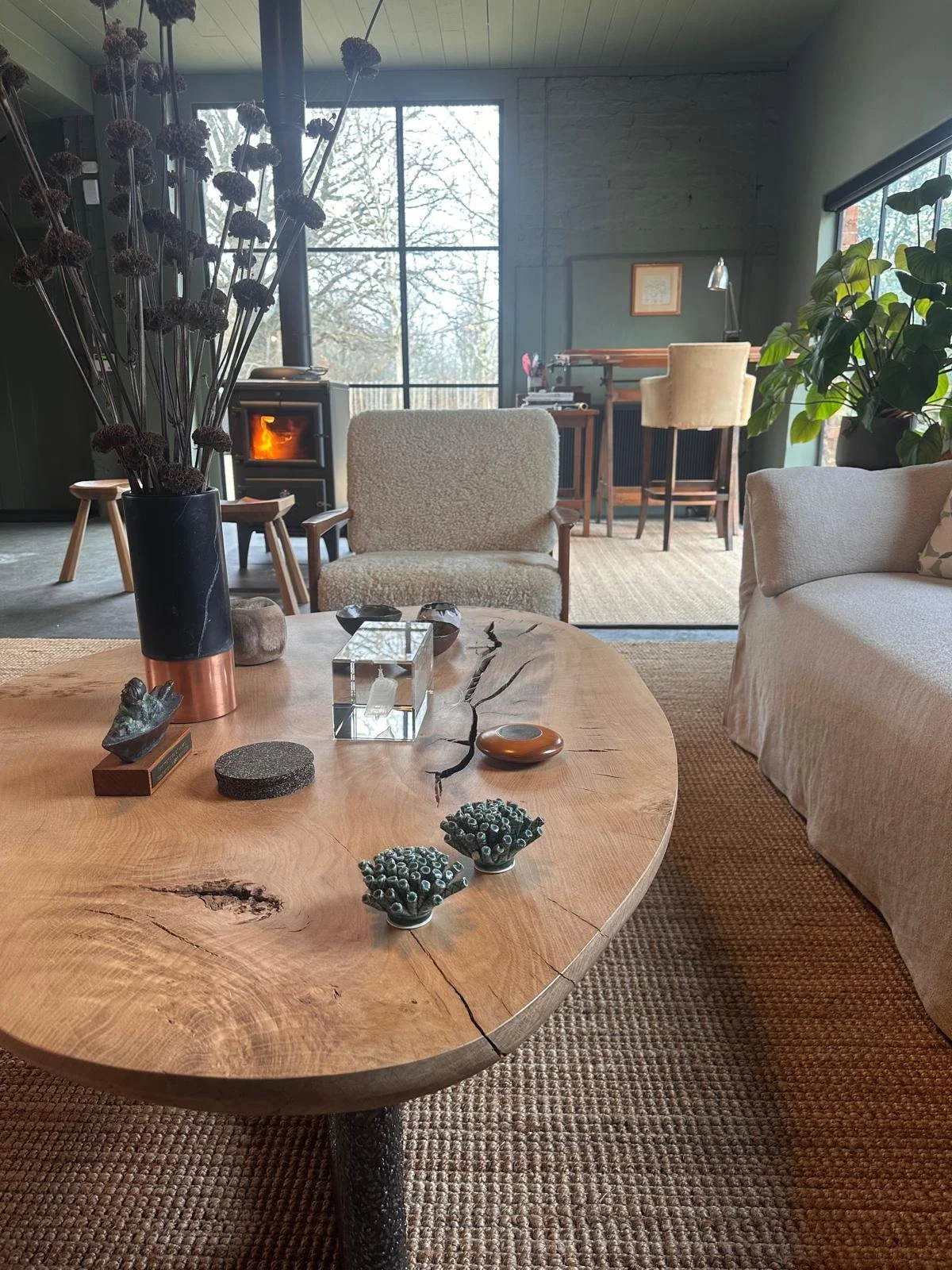 This solid oak chunk makes a powerful statement. Over 300 years old, it stands as a work of art in its own right.
